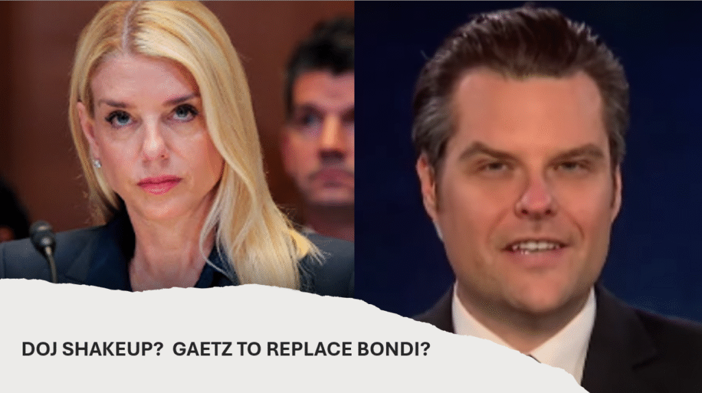 Matt Gaetz to Replace Pam Bondi? DOJ Bombshell! [Video] Posted by Jimmy Parker July 13, 2025 1 Comment 3 min